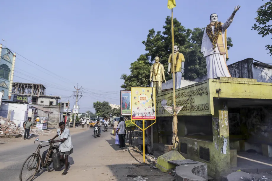 一名男子在2015年阿马拉瓦提安得拉邦州首都的建筑上推着一辆自行车,旁边是政治家的雕像。摄影师:Dhiraj Singh/Bloomberg“包括安得拉邦在内的印度各州普遍面临收入紧张,与联邦政府不同,因此在建设如此快速增长所需的基础设施方面可能面临挑战,” 马达维·阿罗拉, Emkay全球金融服务有限公司的经济学家表示。“也就是说,南印度在吸引投资和建立工业方面走在前面。我认为奈杜的地区政党以及邻近的泰米尔纳德邦的政党都有推动事情进展的既得利益,并且执行速度更快。”