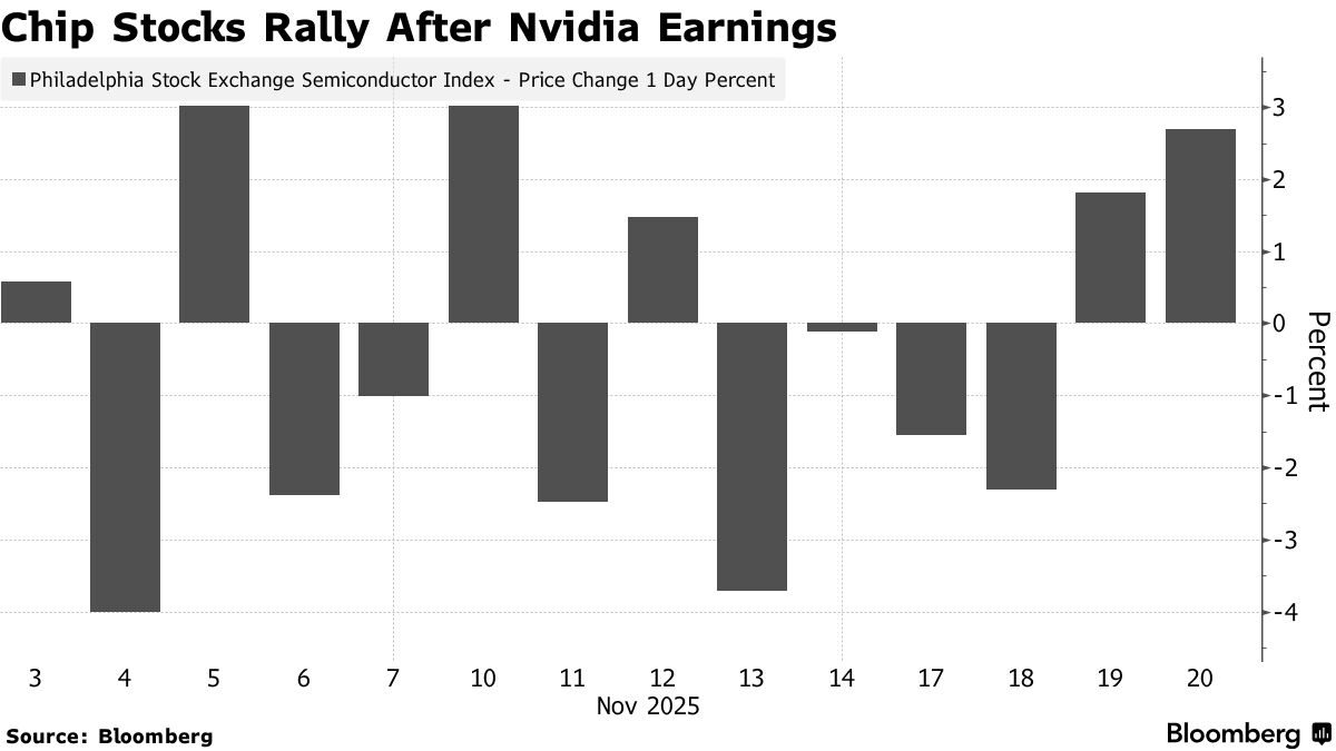 美国股票反弹,英伟达财报缓解人工智能泡沫担忧 - 彭博社