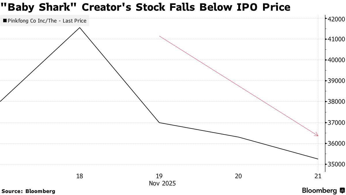 《宝宝鲨鱼》创作者在强劲首发后股价跌破IPO价格 - 彭博社