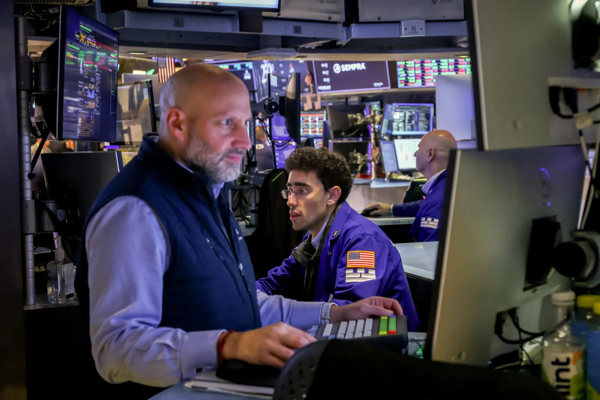纽约证券交易所的交易员。照片:迈克尔·纳格尔/彭博社波动率指数VIX跃升至26以上。最终,标准普尔500指数 下跌1.6%,比日内高点低了3.5个百分点。