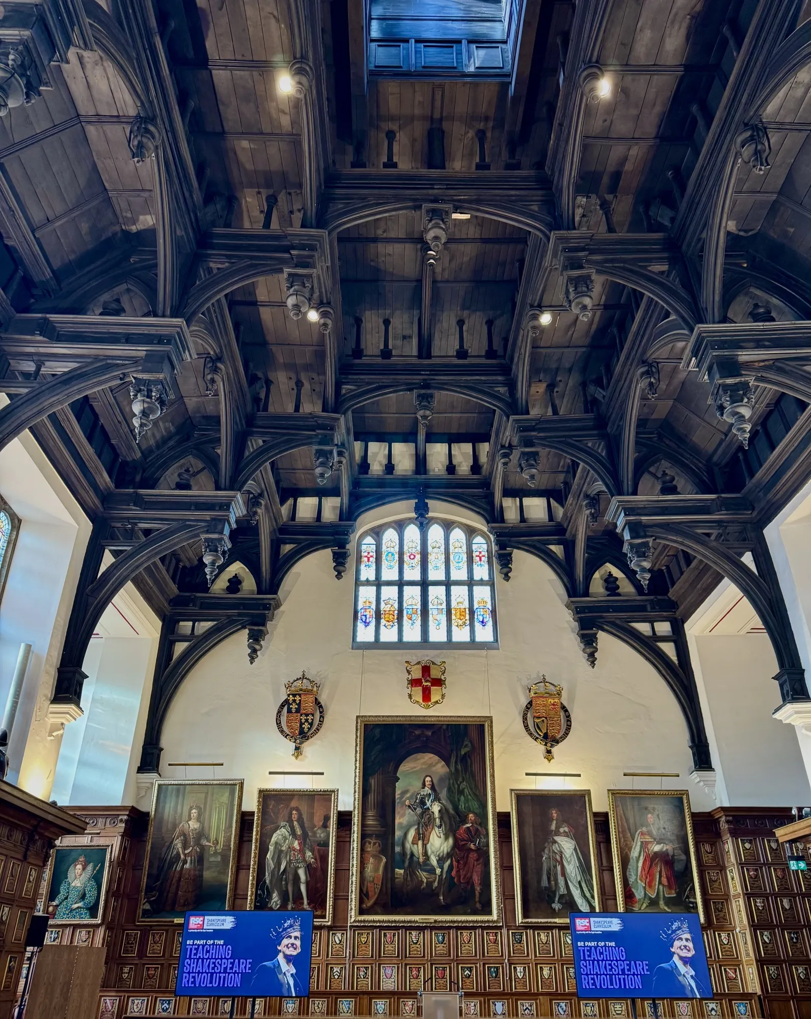 我很高兴我在合适的时间来到了中殿。如果新课程大受欢迎,我可能再也无法在那个大厅里吃午餐了。如此多人将希望有机会沐浴在这位戏剧家伟大的光辉之中,他很可能在424年前第一次观看 第十二夜 在那里上演。