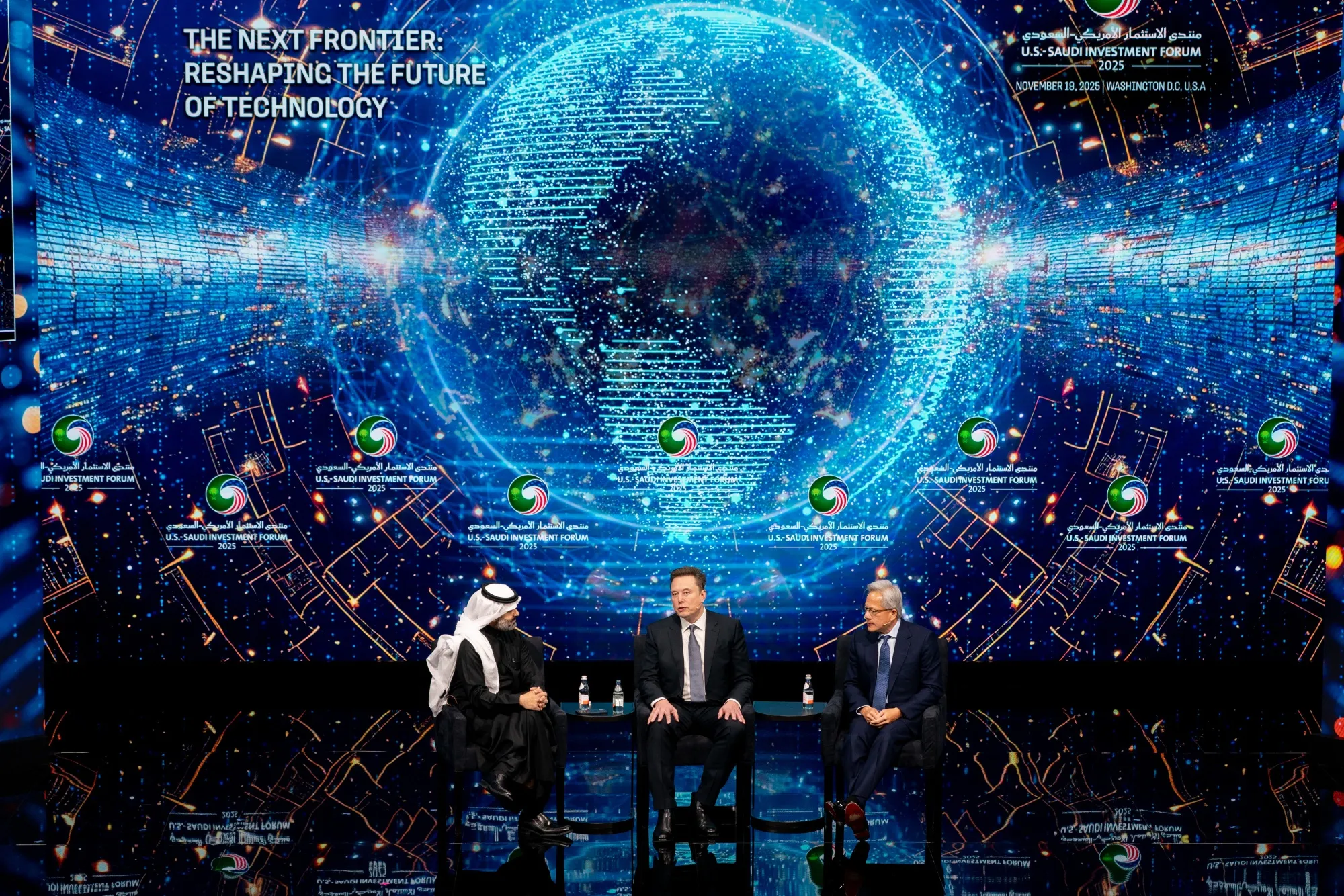 埃隆·马斯克,中心,在11月19日的美沙投资论坛上。