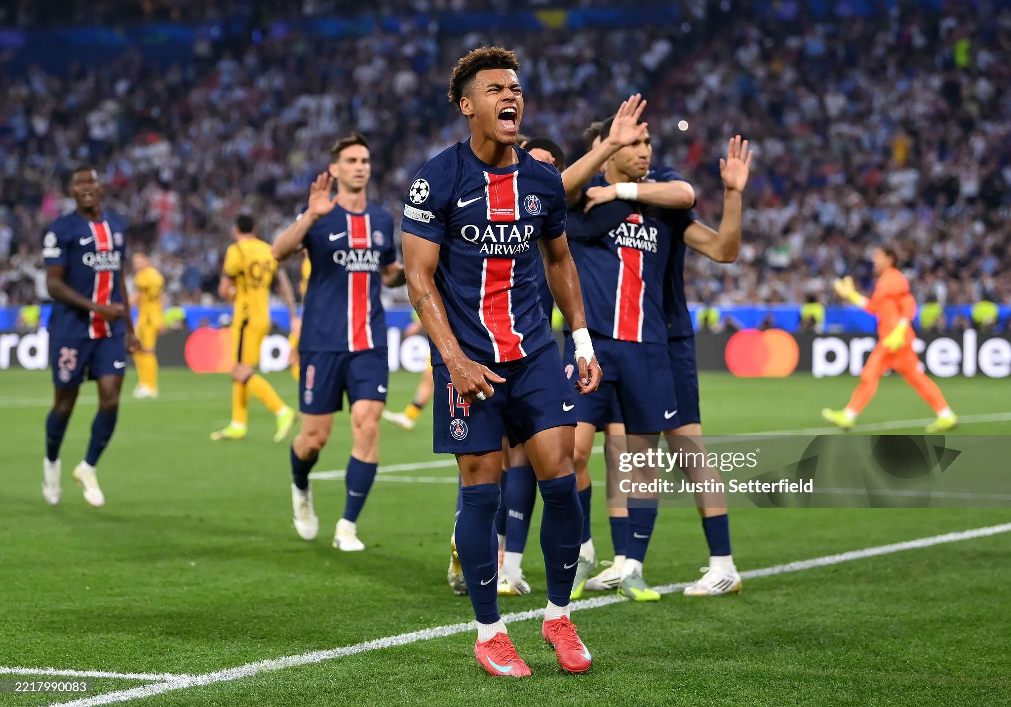 巴黎圣日耳曼的德西雷·杜埃在得知欧足联媒体版权拍卖结果后庆祝。彭博社毕竟,风险很大。欧足联在36年来首次使用新的 媒体顾问,由Relevent Football Partners领导,这是一家美国子公司 Relevent Sports,以及欧足联和欧洲足球俱乐部的商业部门UC3。