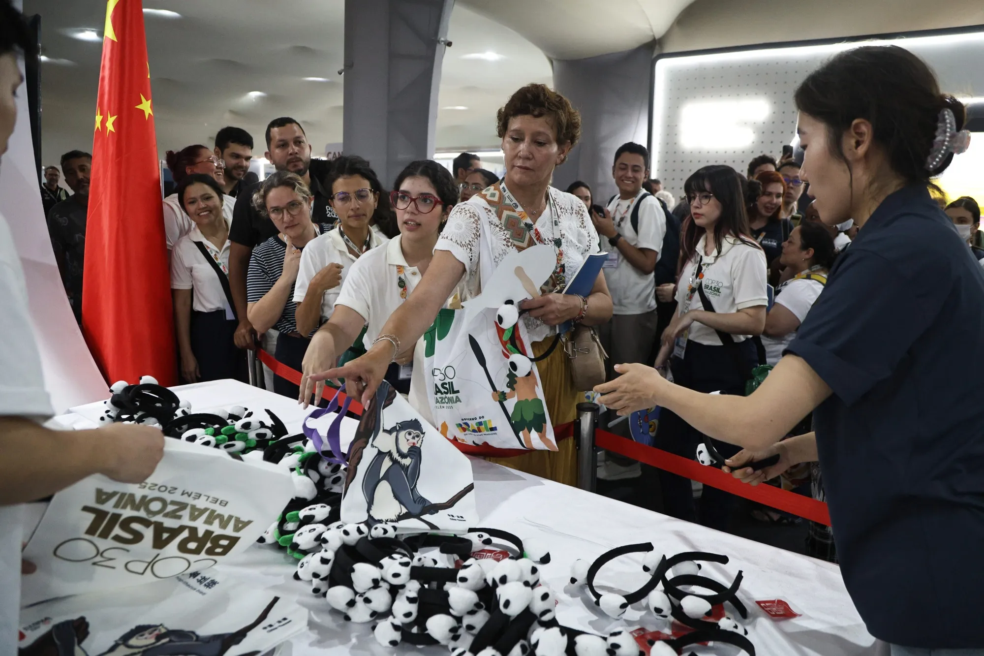在巴西的现场,中国几乎字面上占据了中心舞台。与会者排起了长队,进入这个国家的巨大国家展馆,争相索取像熊猫玩具和带有个性化书法的手持风扇等赠品——在贝伦炎热的条件下,这些都是珍贵的物品。