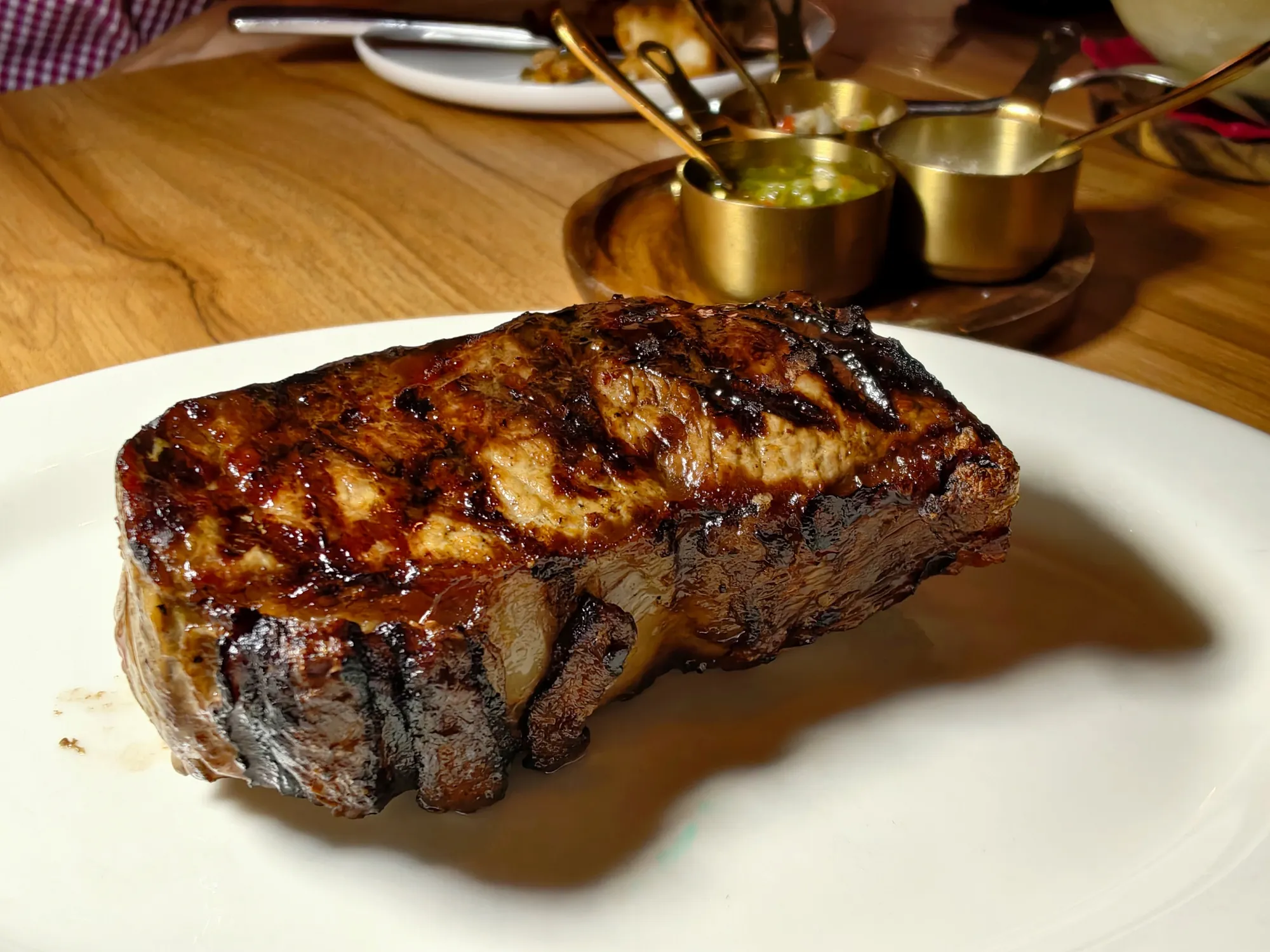 阿萨多。阿萨多正是在那里,我发现一块瘦牛肉的风味是多么丰富,尤其是看似自相矛盾的超级嫩牛里脊(HK$358)——强调是合适的,因为咬下去毫不费力——而这仅仅被 striploin(HK$388)所超越,后者是一块更多汁、更丰腴的肉。菜单上的第三个明星是肋眼(HK$428),它的蛋白质和大理石纹足以成为一盘盛宴。