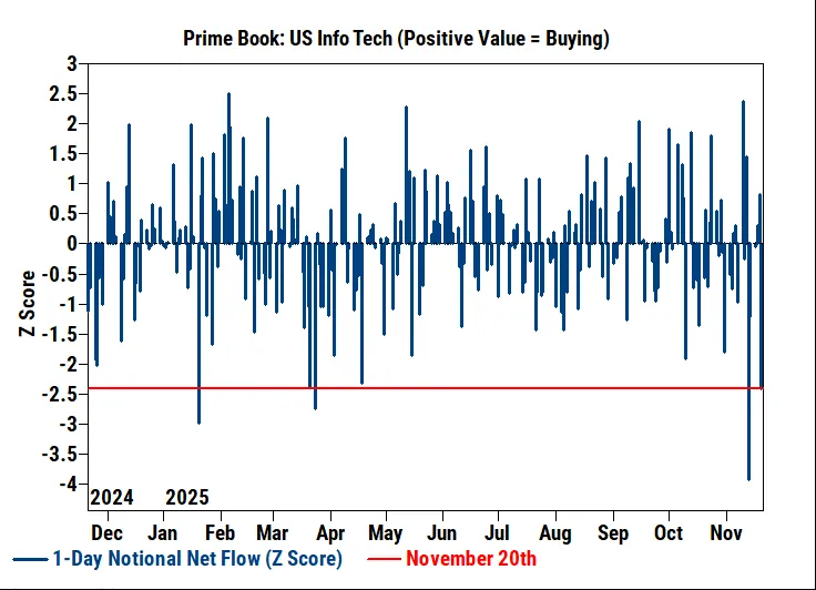 高盛主要经纪来源:高盛主要经纪除了宏观对冲,如ETF和指数的空头头寸外,对冲基金还削减了单只股票的头寸。特别是,高盛发现科技股出现了投降的迹象,这些股票在周四的暴跌中受到重创。去杠杆化几乎影响了该行业的每一个角落,以半导体和半导体设备股票以及软件公司为首。