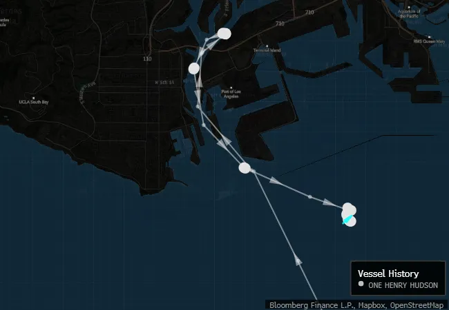 根据彭博社的数据,悬挂巴拿马国旗的亨利·哈德逊号于周三停靠在港口,此前曾停靠东京、名古屋、神户和新加坡。它的运载能力约为8200个以20英尺为单位的集装箱。
