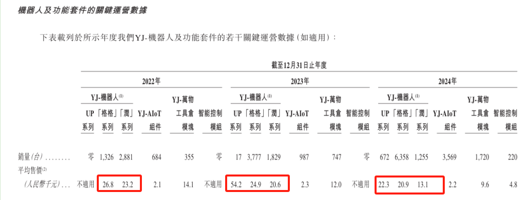 招股书显示,2024年,云迹科技首发单品“润”系列的均价已低至1.31万元,同比大降36.41%;二代产品“格格”系列均价为2.09万元,同比减少16.04%;2023年推出的新品“UP”系列均价为2.23万元,同比降近六成。