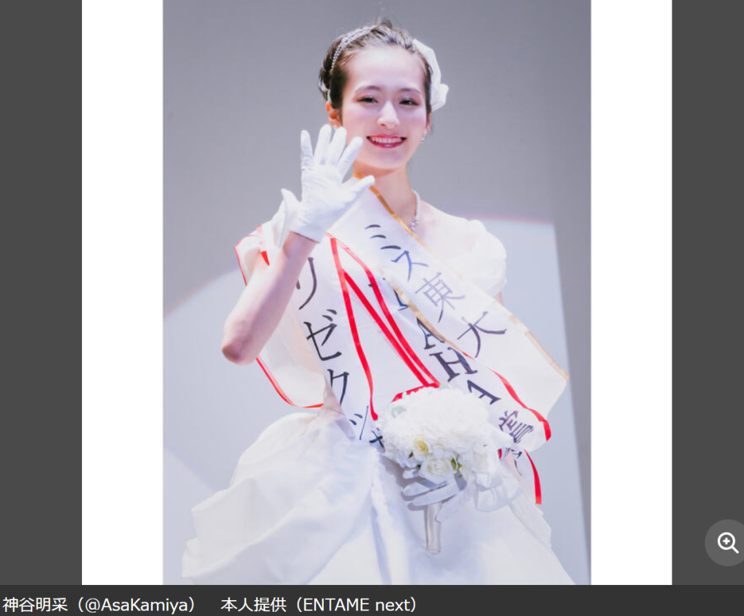 凭借“东大校花”(ミス東大)与“日本校花之最”(ミスオブミス)双料冠军的光环,神谷在2020年以耀眼的姿态踏入公众视野。