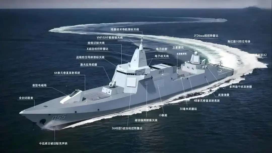回过头看中国海军,055型驱逐舰以一体化****综合桅杆和**“四面盾”**式设计,呈现出干净利落的隐身外形。在这简洁的外观之下,是多波段有源相控阵雷达系统的高度集成与强大性能。