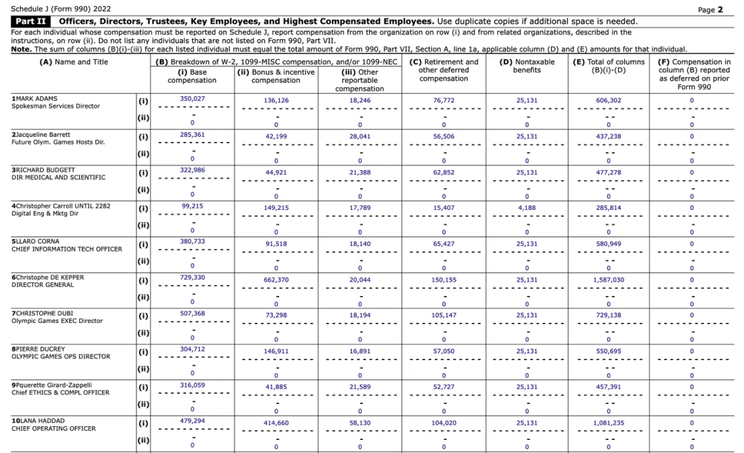 国际奥委会 2022 年纳税申报表,990 表。图片来源:The Inquisitor