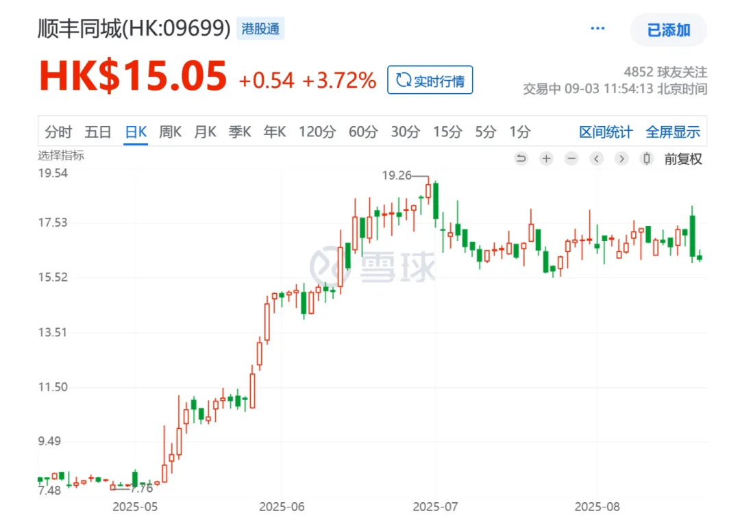 而它们背后,那个默默提供运力“弹药”的身影——顺丰同城,同样交出了一份不错的答卷:股价与净利润双双翻倍,成为这场混战中不容忽视的一个受益者。