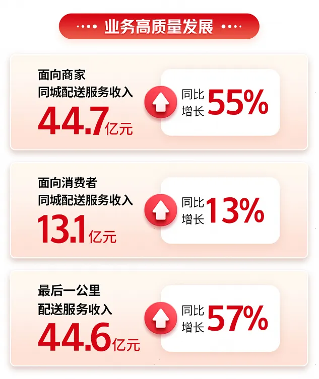 例如,顺丰同城面向C端的“独享专送”服务,以高标准、高客单价精准切入高端个人件市场,该产品上半年收入同比翻3倍,推动面向消费者的同城配送收入同比增长12.7%,达13.12亿元;