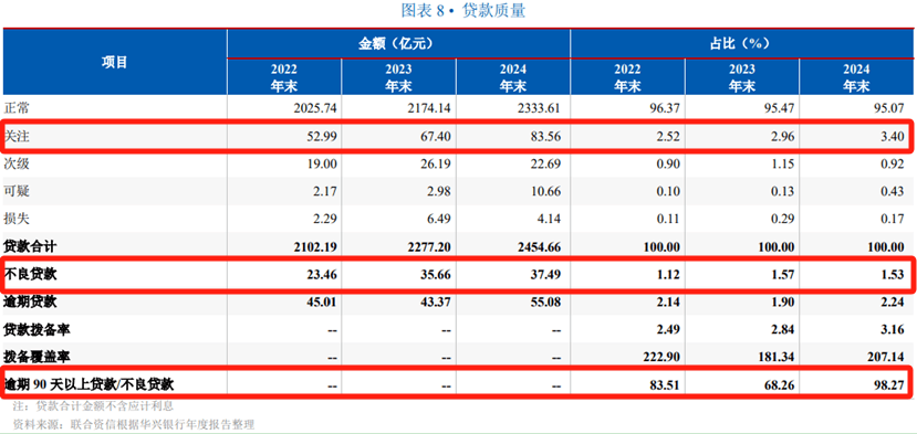 (图 / 广东华兴银行2022-2024年贷款质量(来源:广东华兴银行2025年信用评级报告))