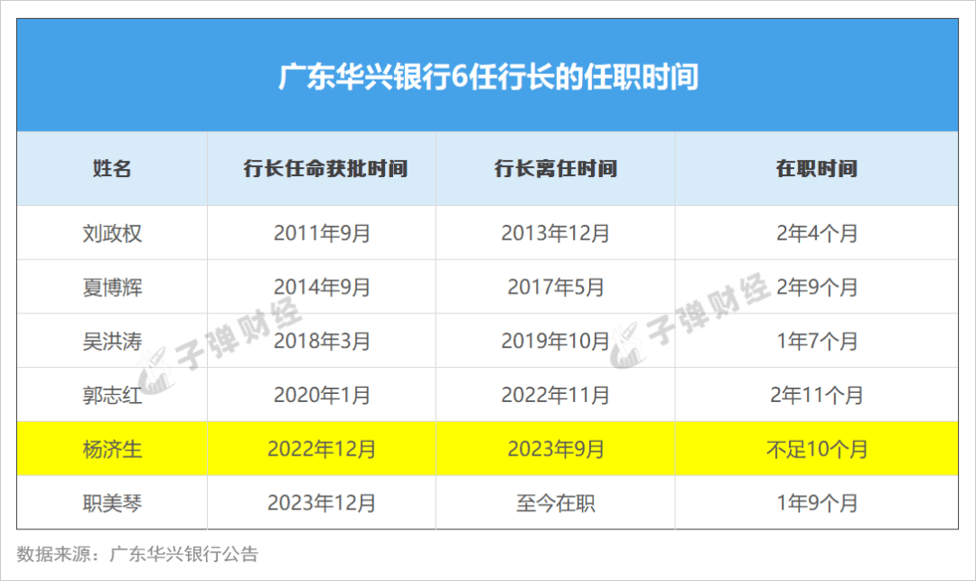 令人惊讶的是,第五任行长杨济生任职尚不足10个月便离任了。