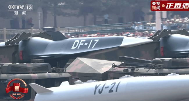 东风-17在之前的阅兵中也曾出现,属于新一代中程高超声速弹道导弹的典型代表。
