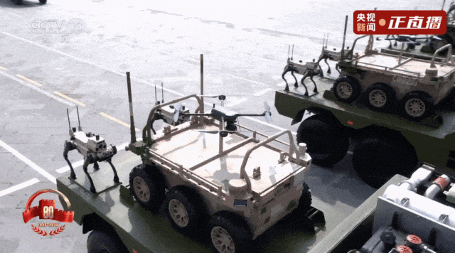 至于狗狗呢,在此次阅兵中是展示为无人作战小组中的一个组成部分。