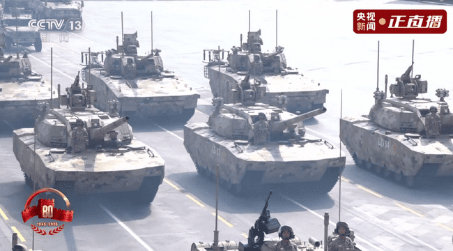这刚开头可能还让“老军迷”们感到“亲切”,照例的主战坦克打头阵,排头的是多年来作为我军主力坦克的ZTZ-99,虽然是99B型,但怎么都还算是“眼熟”的装备。
