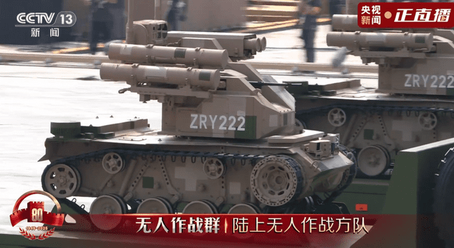 某新型的攻击型无人地面车、UGV 12.7毫米机枪无人车、UMCV无人多功能车、无人无人机母车等装备,组成了无人地面方队的核心力量。