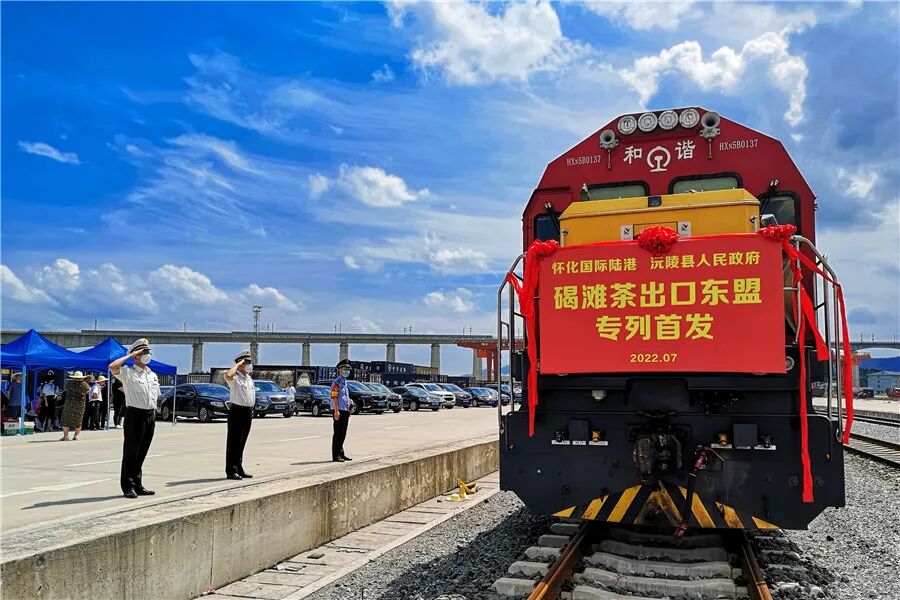 2022年7月,一列满载沅陵碣滩茶叶的“怀化—北部湾港”铁海联运班列从怀化国际陆港启程,这是怀化第一次承运出口值超过6000万元人民币的怀化本土产品。这标志着沅陵碣滩茶在打造世界级茶品牌的征程中,迈出了具有里程碑意义的一步。