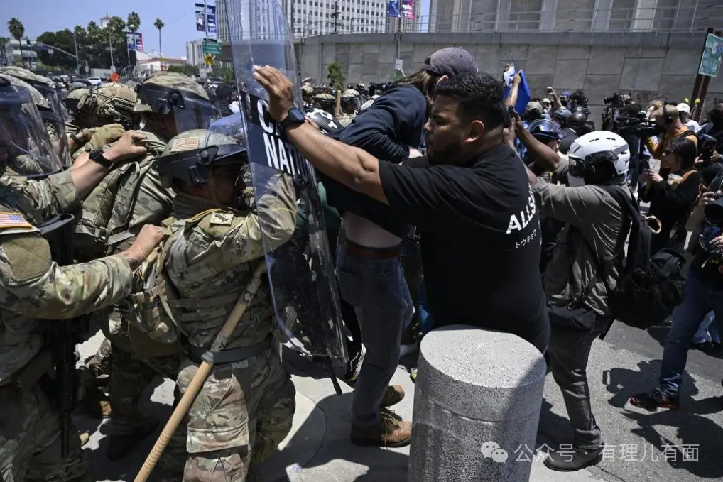 今年六月洛杉矶发生的抗议,本来就是常见的街头冲突,规模有限,警察完全能应付。可特朗普硬是下令出动国民警卫队和海军陆战队,把地方治安问题生拉硬拽成“国家安全危机”。