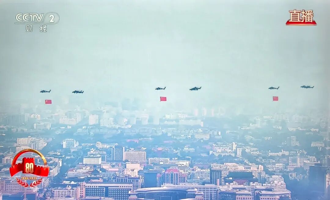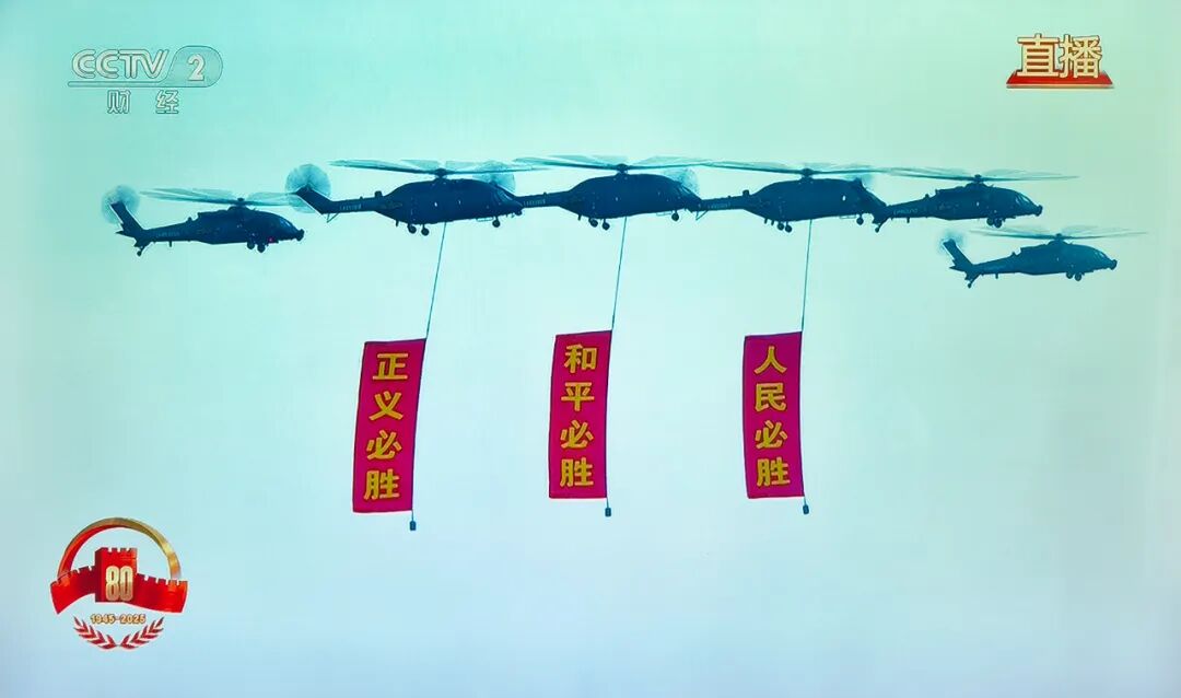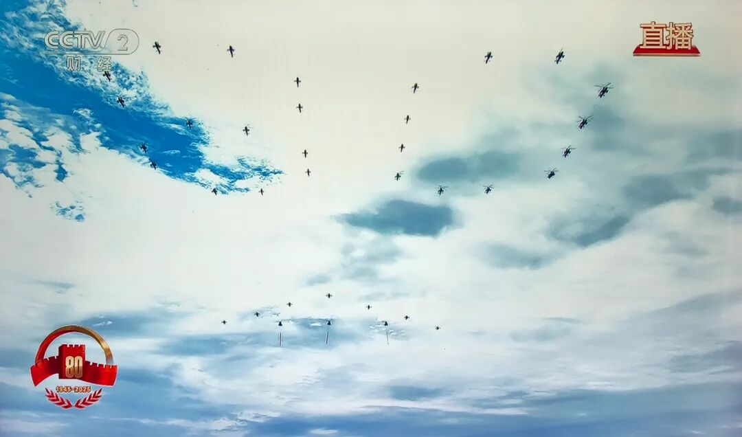 直升机编队组成“80”,象征抗战和反法西斯战争胜利80周年!