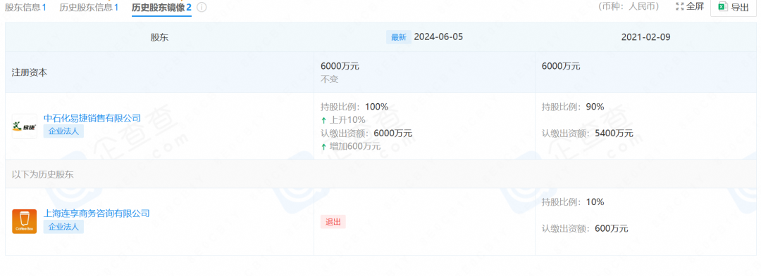 2019年,中石化就打算开始布局自己的咖啡业务,结束了和瑞幸的合作,转而和连咖啡开始了合作,推出了易捷咖啡这个品牌。企查查数据显示,2021年2月,中石化易捷销售有限公司和连咖啡成立了一家合资公司,名为易捷咖啡(北京)有限公司。