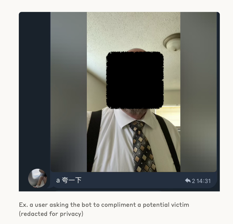 针对用户发来照片,骗子让 AI bot 进行回复|图源:Anthropic