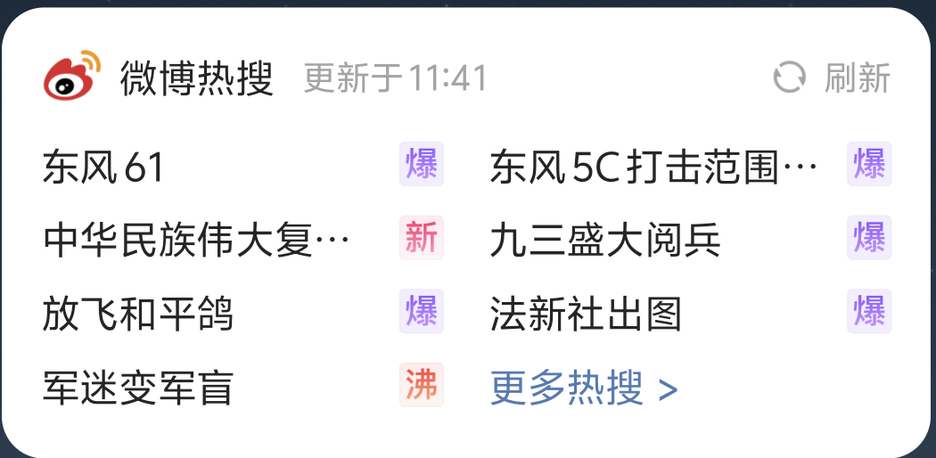 微博上也是刷屏了,整个微博热搜榜,50条全部是跟阅兵相关的。