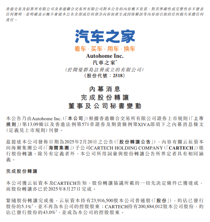 虽然中国平安旗下的云辰资本还占了 5.1% 的股份和一个董事会席位,但这波操作下来,汽车之家的 CEO 换成了海尔系,相信不久后就会有大动作。