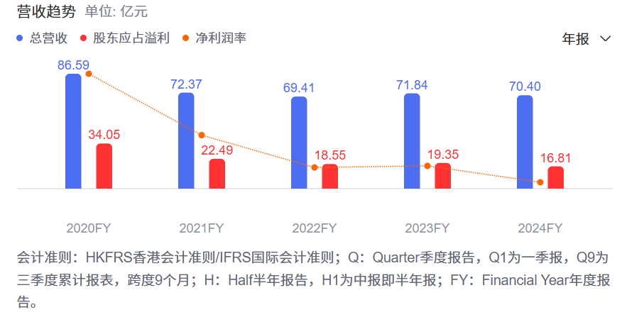 更别说,如今的汽车之家有点像李想走后的泡泡网,已经步入黄昏。从 2020 年到 2024 年,财务状况稳步下跌,营收从 86.6 亿降到 70.4 亿,利润也从 34.1 亿降到 16.8 亿。