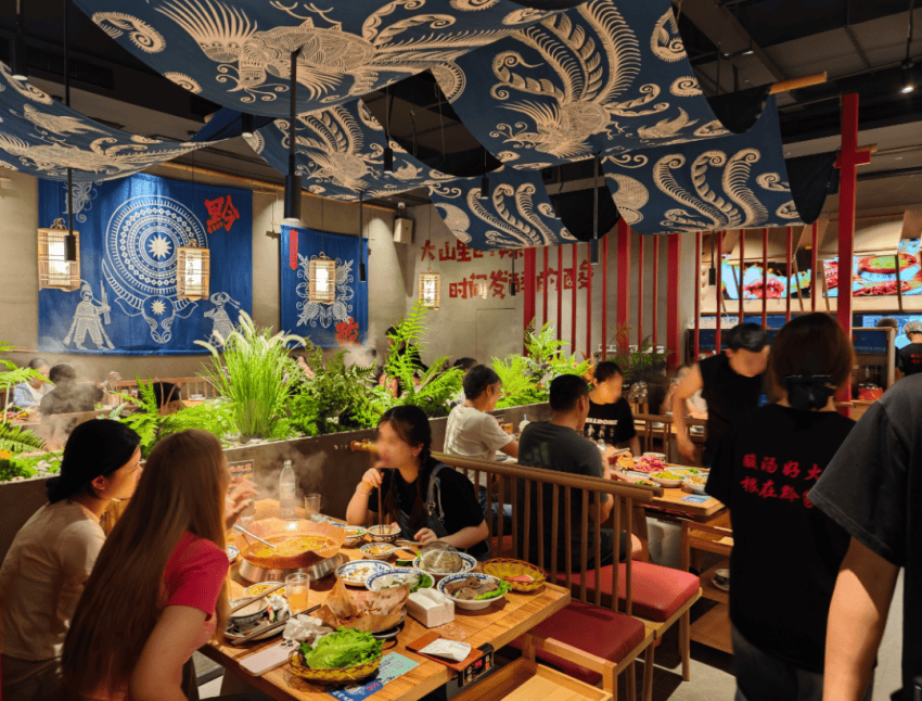 以黔家婆为例,其通过“鲜牛肉+酸汤+小吃”的高性价比组合,结合贵州文旅热潮,将民族风情与“能喝汤的养生火锅”概念相结合,打造出差异化的消费体验。