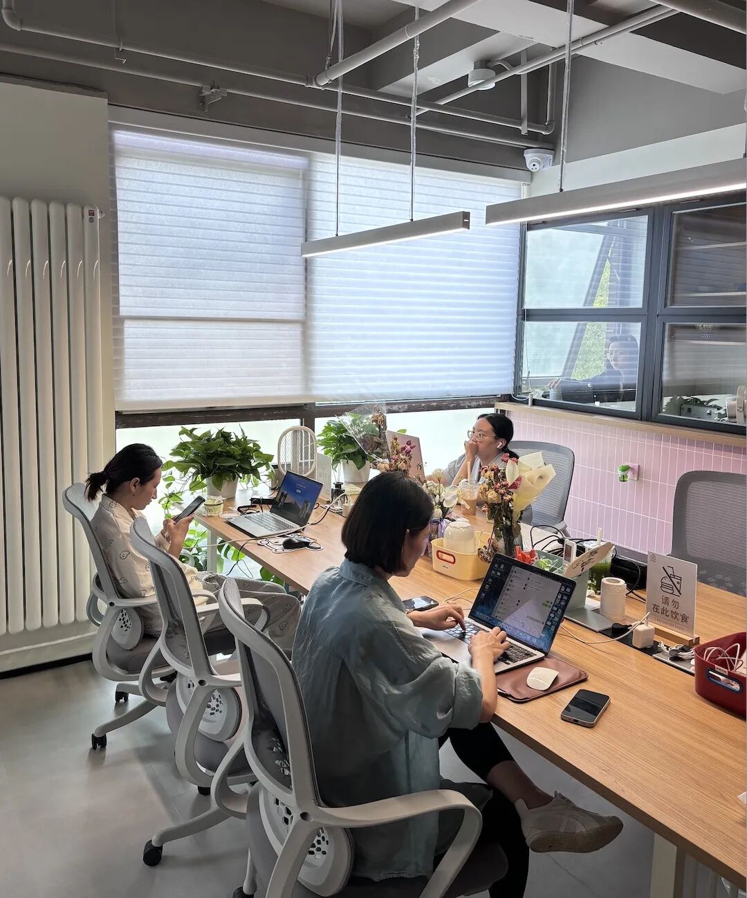 想明白后,她和挤出租房的朋友,在西三旗成立了一间工作室。公司成立第二年,员工的年底分红已经有几万元。
