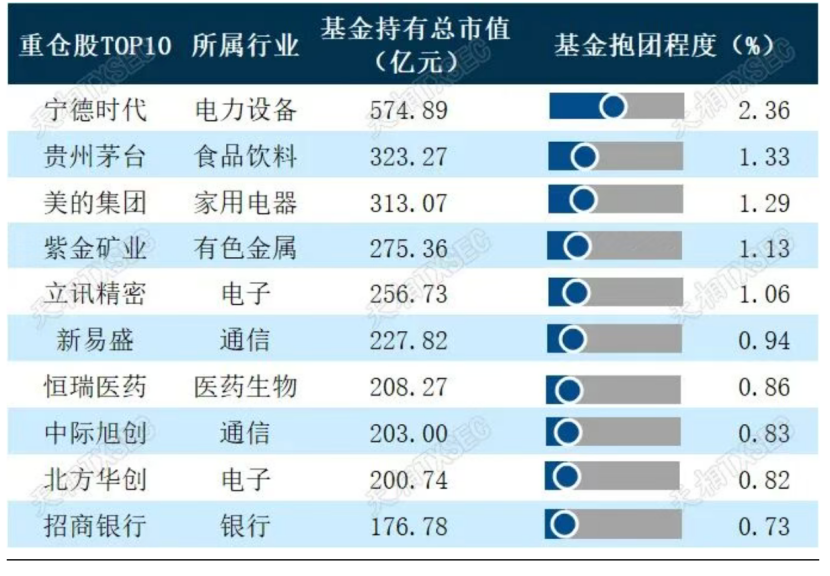 宁德时代仍旧是公募基金A股第一大重仓股
