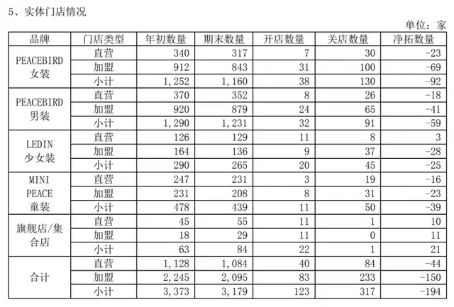 此外,门店运营方面,太平鸟持续进行门店收缩,报告期内总门店数为3179家,新开123家,关店317家,净关店194家。