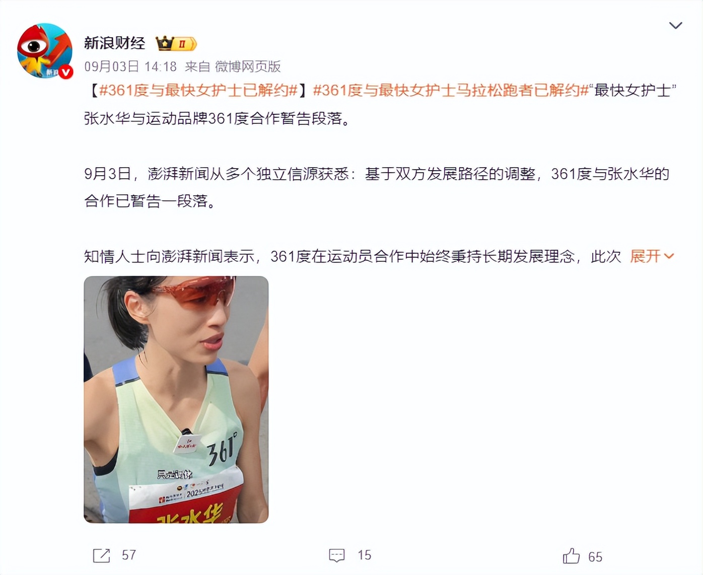 9月3日,361度表示:基于双方发展路径的调整,361度与张水华的合作已暂告一段落。