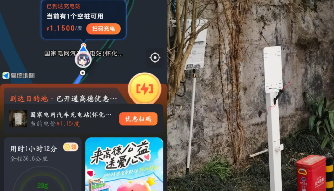 乌乌过年时开电车出行,半路需要给车子补能,便按照高德地图的导航指引,来到了30多公里之外,湖南怀化的一处充电站。