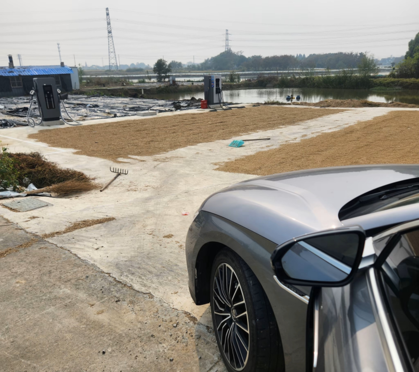 当小美开车到达目的地后,发现预想中的一排排充电桩,此时并没有出现在眼前,自己正停在一户农家门前,门口左手边是个牛棚,牛儿哞哞地打着招呼,右手边则是一片菜地,里面一片郁郁葱葱。