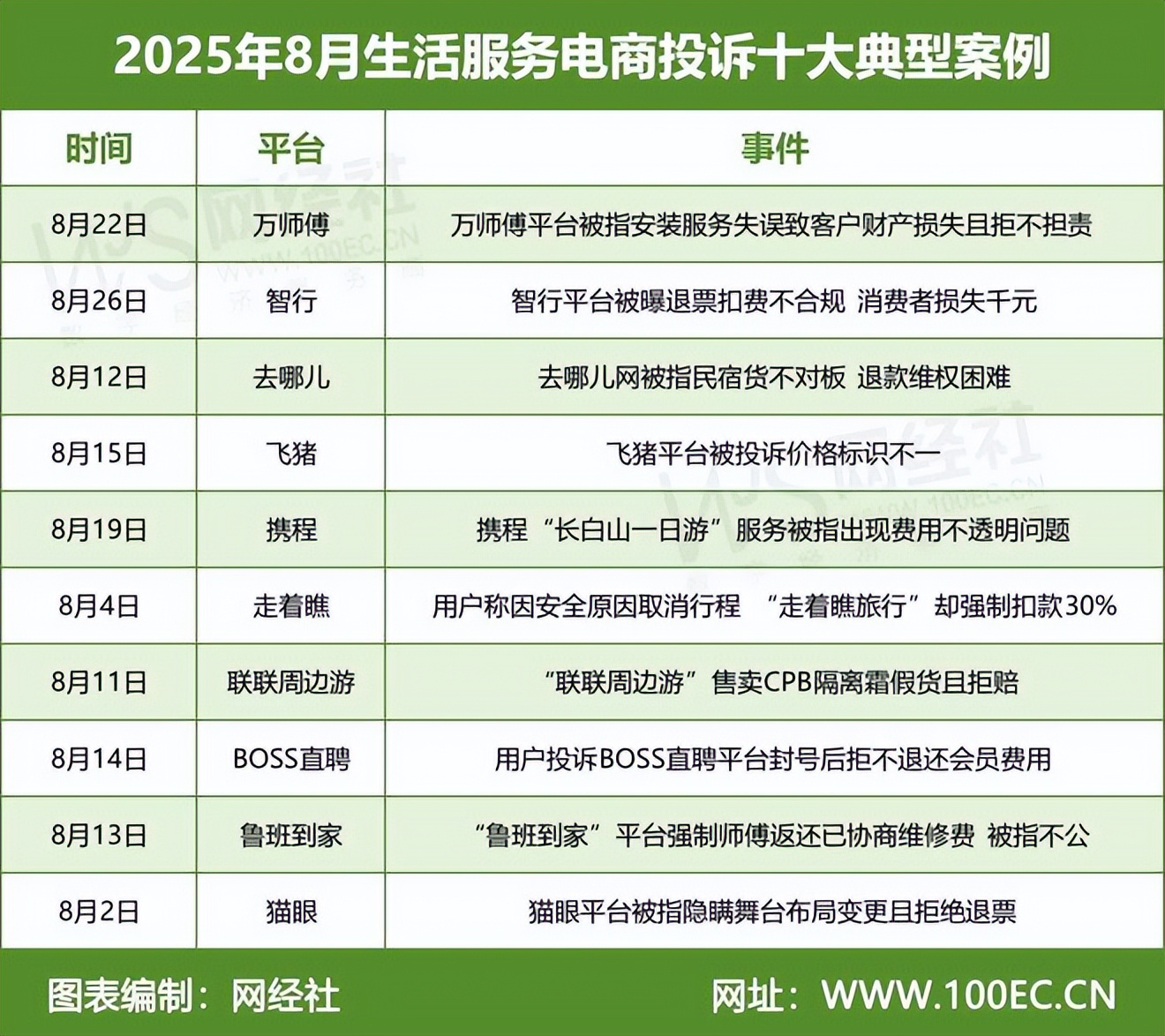飞猪万师傅走着瞧旅行等10家平台入选生活服务电商典型投诉案例