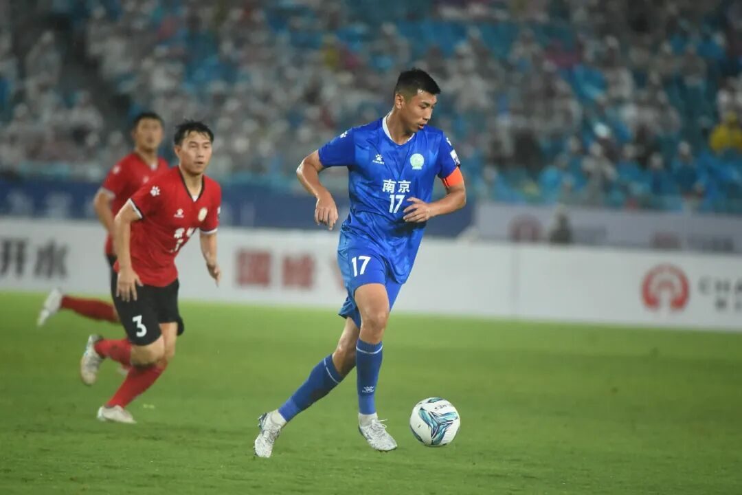 身穿17号球衣、36岁的渠成是此次苏超南京队中年龄第二大的球员。随着年龄增加,体能的挑战愈发明显。“以前踢一场比赛,可能第二天就恢复了,现在要2—3天才行。”为保持状态,渠成始终将体重控制在80公斤。“南京队是我球员生涯的最后一站,我会努力站好这班岗”这是渠成的坚守;