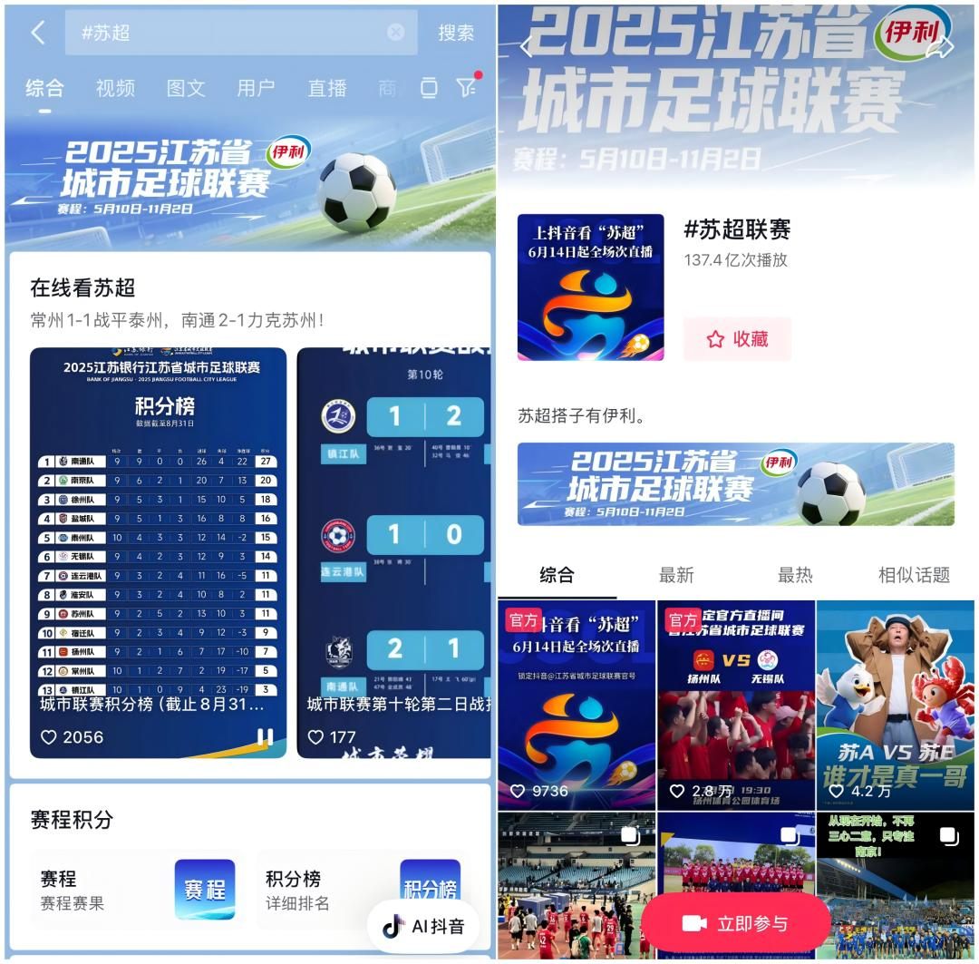 截至8月底,抖音上关于苏超及苏超联赛的话题播放量已超过300亿次。全国14亿人,相当于平均每人看了21次还多,而这仅仅是一个短视频平台的数据。