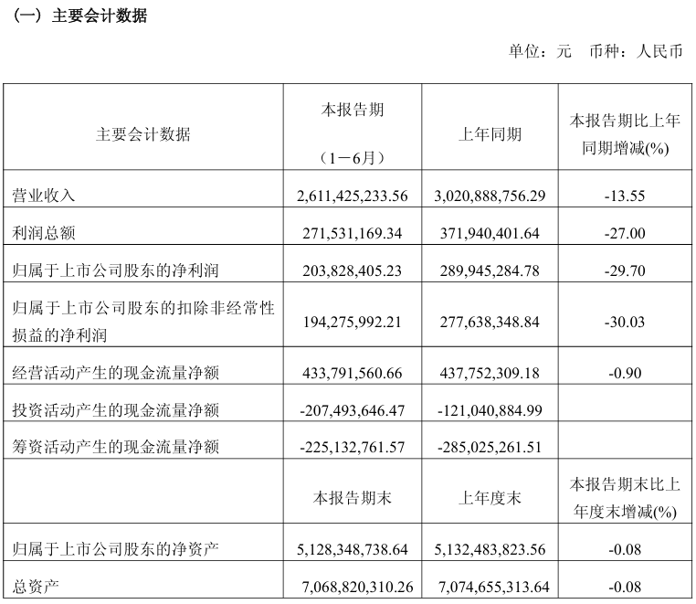 作为国内短保面包领域的龙头,2025 年上半年,桃李面包交出了一份营收与利润双降的成绩单:实现营业收入 26.11 亿元,同比显著下滑13.55%;归母净利润2.04亿元,同比降幅达29.7%。