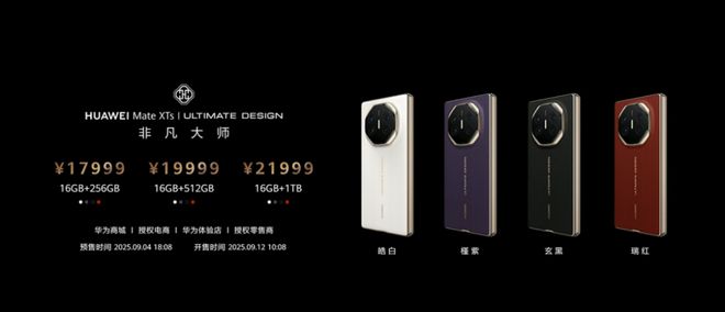 除了此前的瑞红、玄黑配色,还增加了皓白和槿紫共四种配色,9月4日18:08预售,9月12日10:08正式开售。