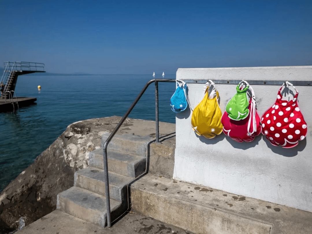 随着水质逐渐改善,人们重新走进莱茵河,巴塞尔人蒂洛·阿梅尔斯(Tilo Ahmels)萌生了灵感:设计一款显眼、防水、能漂浮的包,让重返莱茵河的泳者安心畅游。