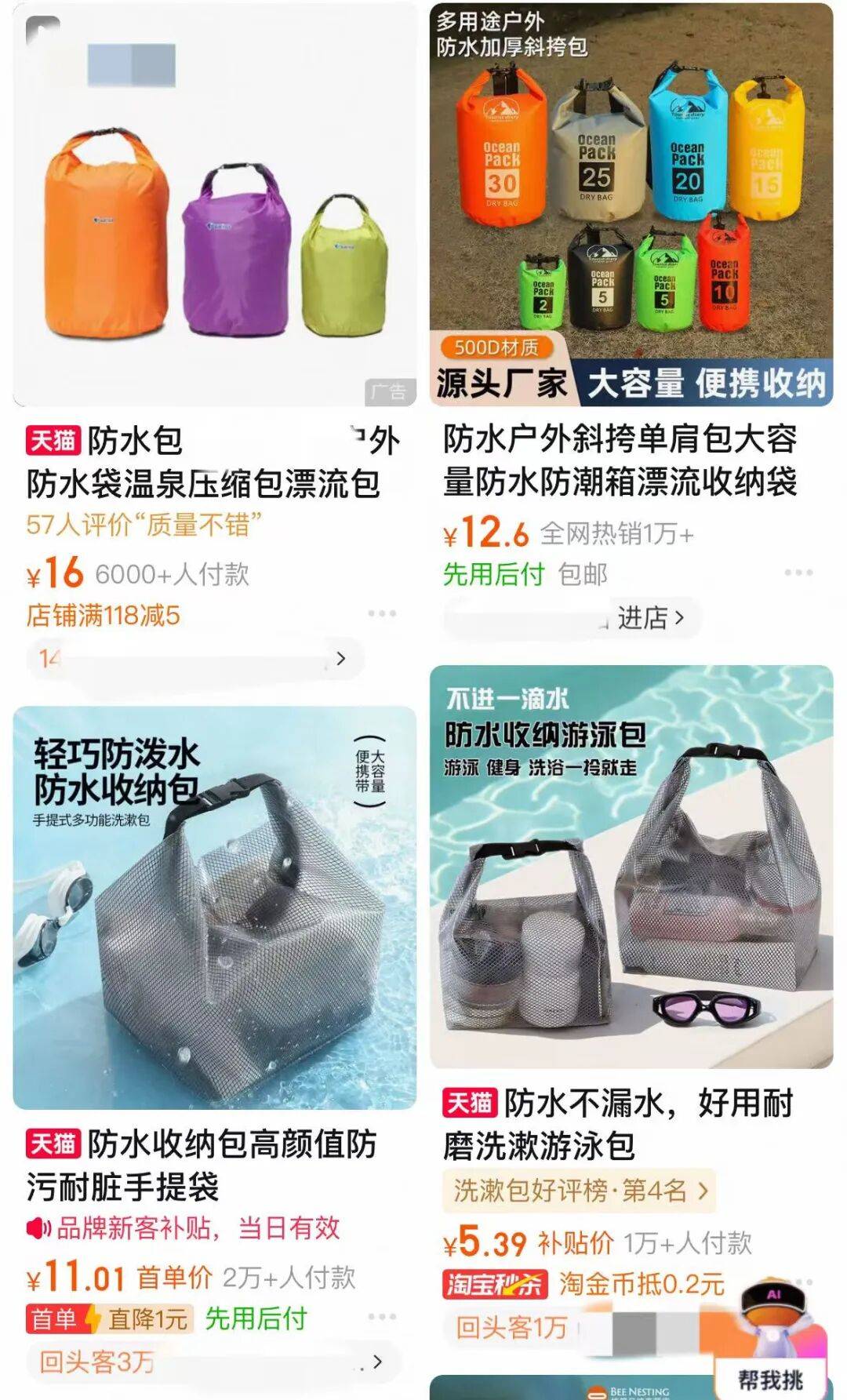 了解Wickelfisch时,TRASHGUN发现,除了长得不像「鱼」之外,拥有「同样功能」「类似设计」的防水包,在中国本土电商平台上比比皆是,售价往往低至十几元人民币,两者间的巨大价格鸿沟,让人无法忽视。