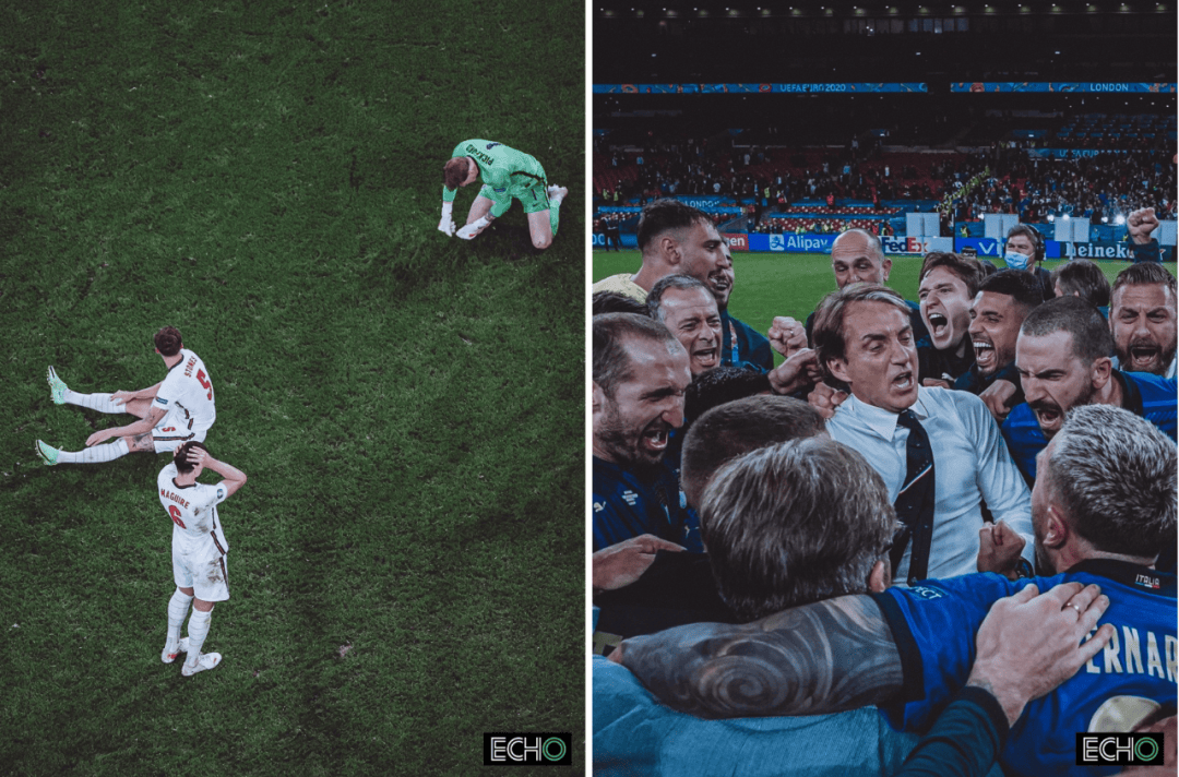 例如,了解埃里克森为人善良的球迷,会对他在欧洲杯赛场因心脏骤停倒下时感到格外揪心。此时,ECHOFOOTBALL一张有着情绪感调色的照片比充满通稿感的新闻照更有感染力。