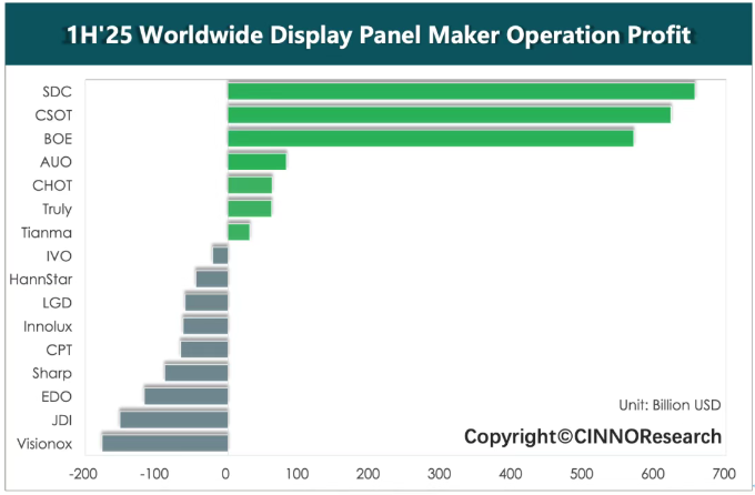 ▲图示: 2025上半年全球显示面板企业营业利润排名,来源: CINNO Research