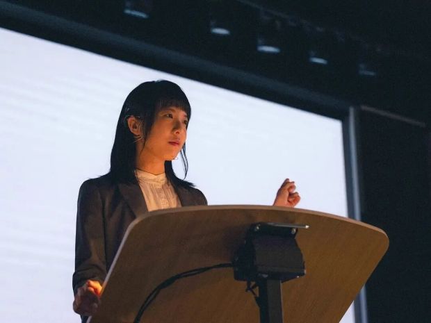 素恩在台上分享自己“战胜缺陷”的经历时,表示希望科技能“消除聋人”,这番话激怒了台下的子信。