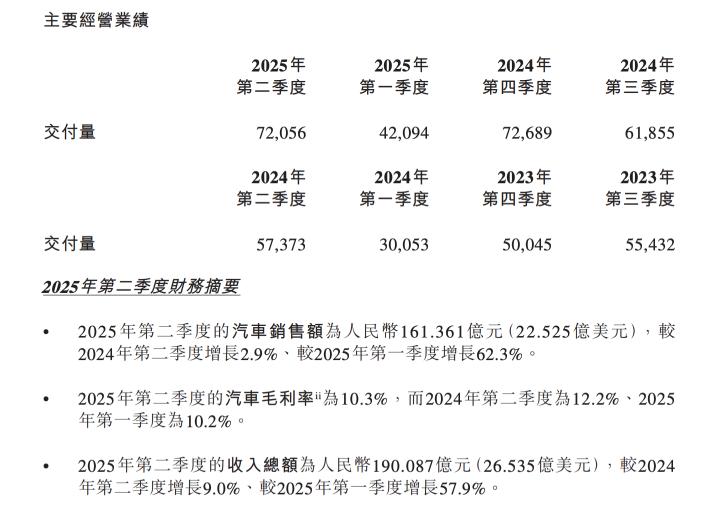 其中,蔚来二季度的汽车销售额为 161.361 亿元,比 2024 年二季度同比增长了 2.9%,比 2025 年第一季度增长了 62.3%。