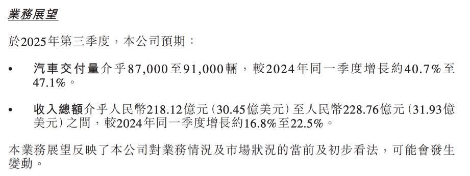而根据蔚来在二季度财报中给出的业绩指引,蔚来预计在三季度的汽车交付量为 87000 辆至 91000 辆,比 2024 年季度增长约 40.7% 到 47.1%。